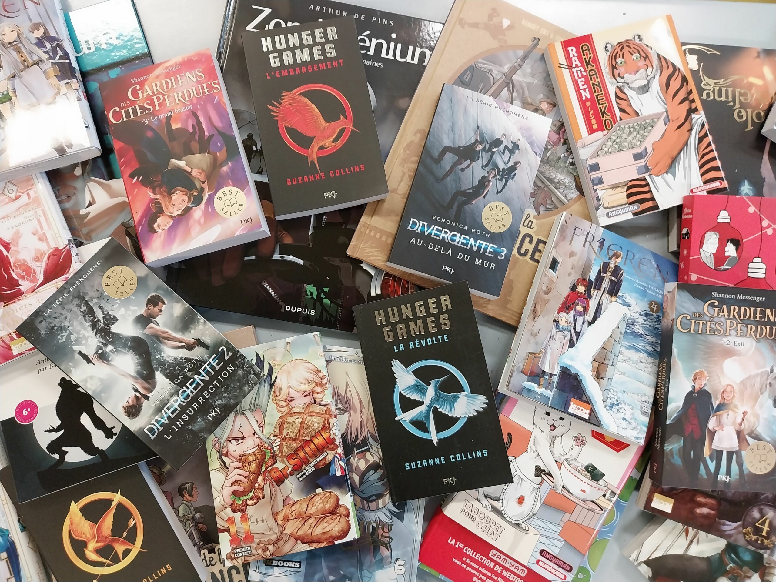 Il y a aussi des séries qui n’étaient plus disponibles au CDI depuis longtemps, comme Hunger Games, ou bien des nouveautés comme la trilogie Divergente ou un roman tiré de la série Heartstopper.