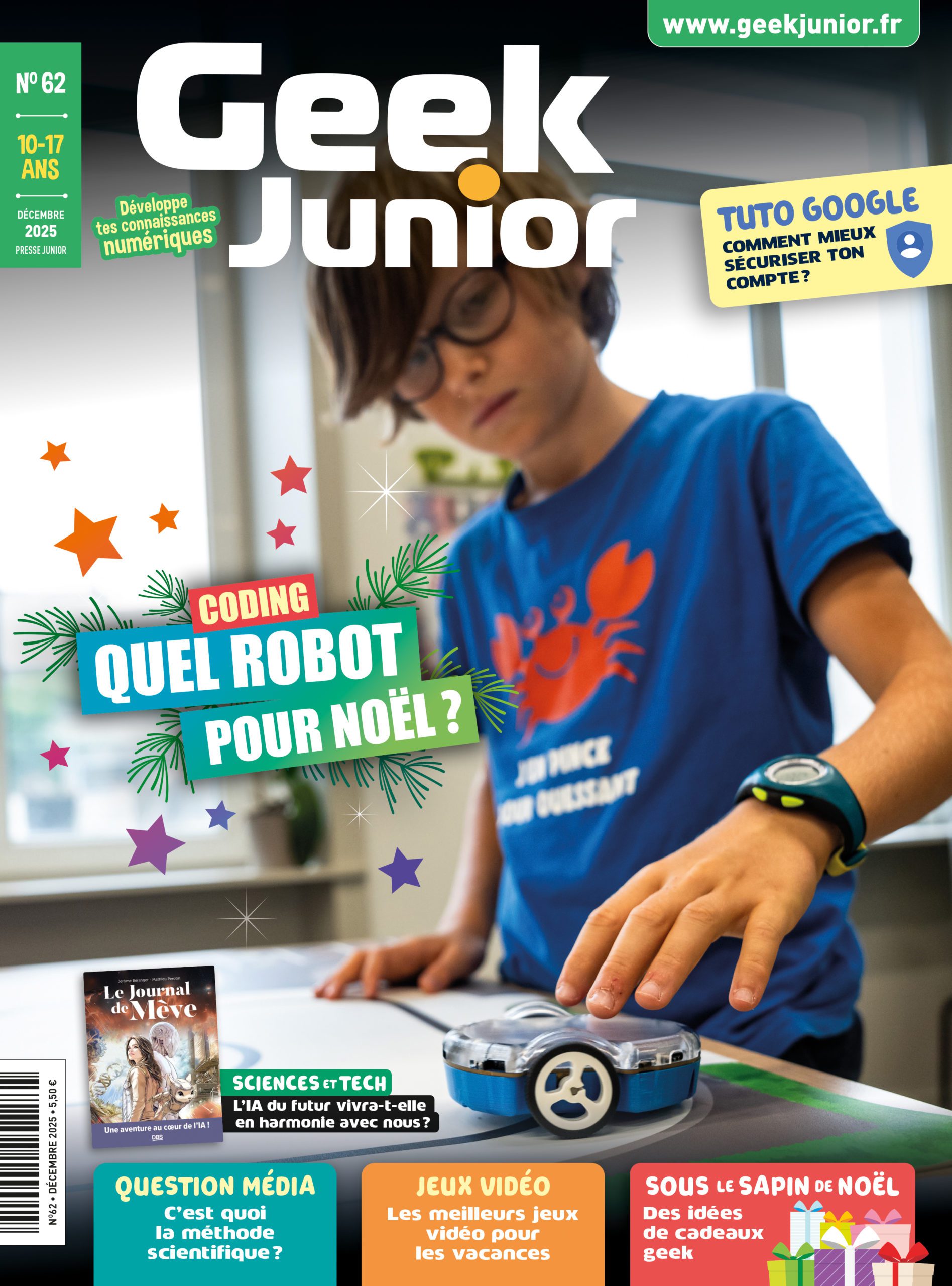 Au sommaire de ce numéro 62, un dossier sur les robots programmables, plusieurs articles sur l’IA ou les jeux vidéo, des conseils de lecture, comment sécuriser son portable, etc.
